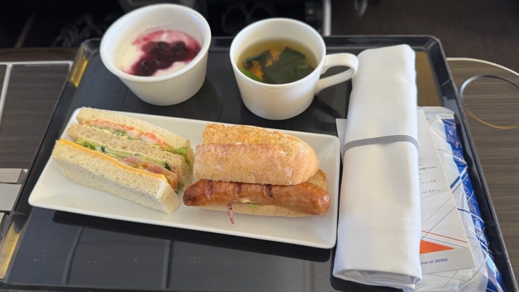 国内線で機内食ということに違和感を覚えつつも、しっかりといただく。
